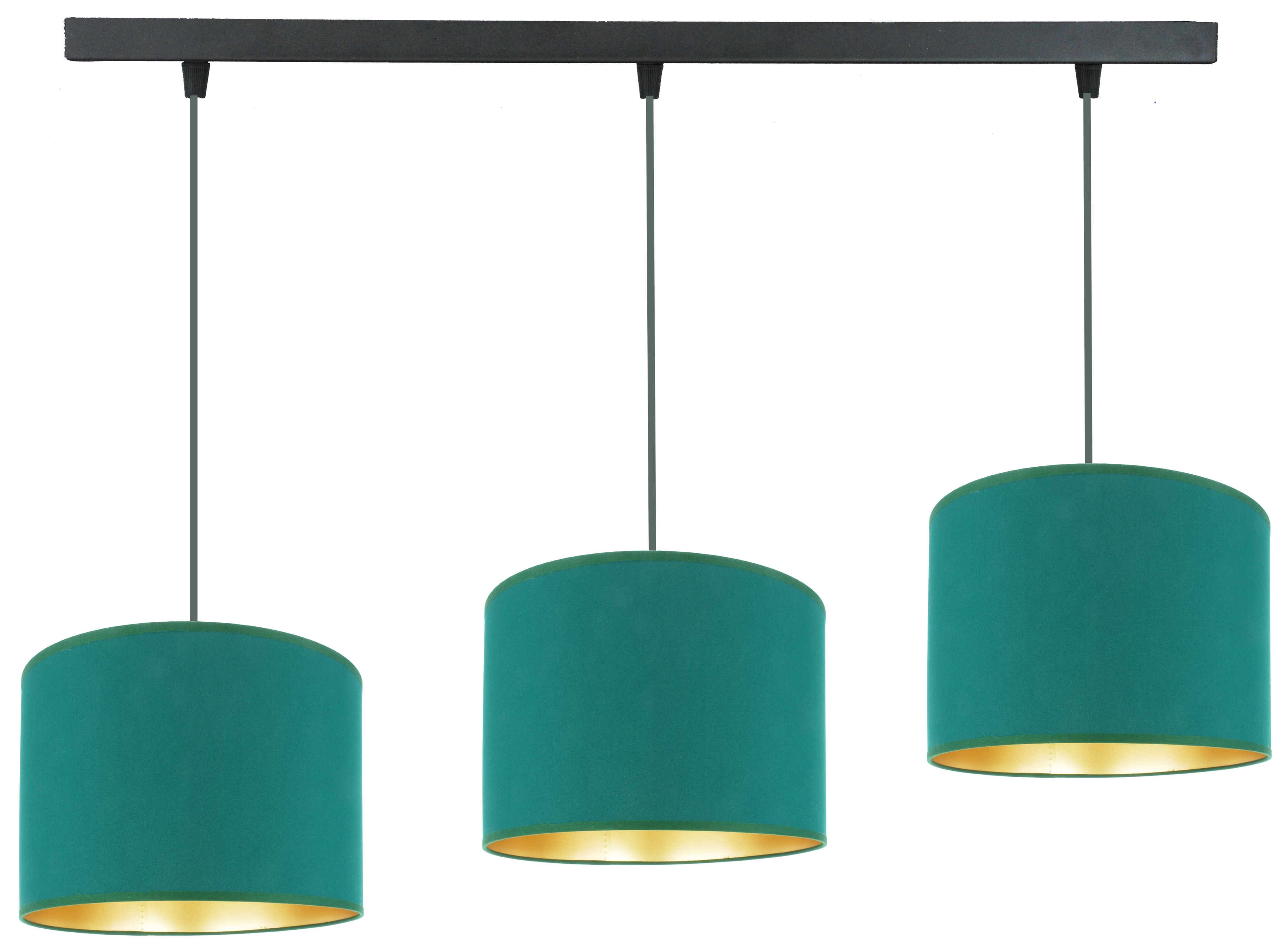 Abażury z tkaniny w kolorze butelkowej zieleni, wewnątrz wykończone złotą folią,