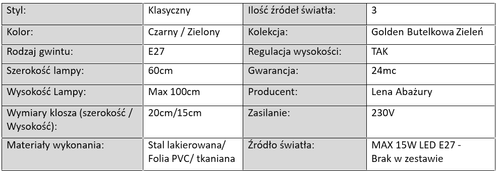 Kolekcja Golden Butelkowa Zieleń to propozycja dla osób, które szukają połączenia ponadczasowej elegancji z modnym, głębokim kolorem. Lampy z tej serii łączą w sobie styl, funkcjonalność i wyrafinowanie, dzięki czemu stanowią nie tylko źródło światła, ale również wyjątkowy element dekoracyjny w każdym wnętrzu.