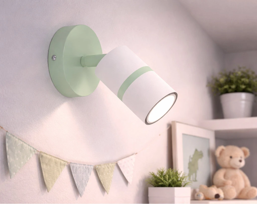 Minimalistyczna forma sprawia, że kinkiet stanowi subtelny, ale wyrazisty element dekoracyjny, idealny zarówno do przestrzeni dziecięcych, jak i eleganckich wnętrz mieszkalnych.