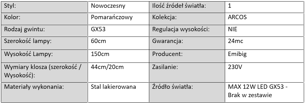 Lampa Podłogowa Stojąca ARCOS Pomarańczowa / 1xGX53