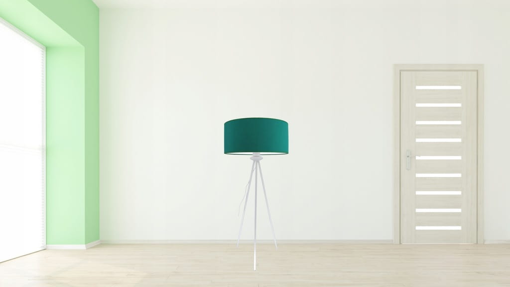 Modny kolor abażurów – butelkowa zieleń na białej folii PVC daje piękny efekt świetlny.