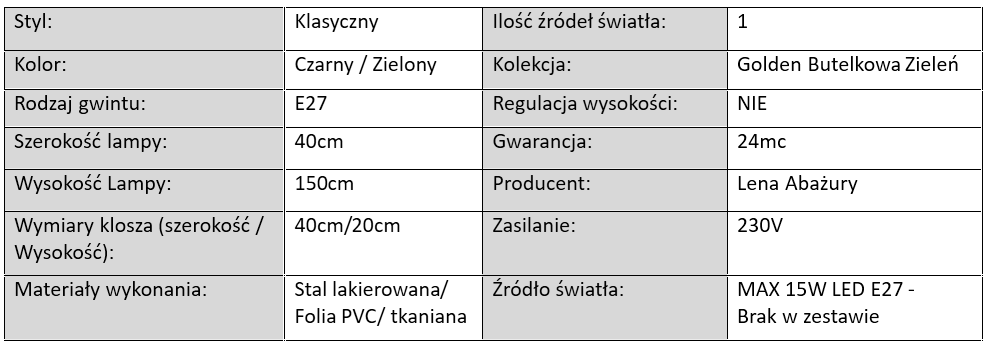 Lampa Podłogowa Stojąca Golden Butelkowa Zieleń / 1xE27