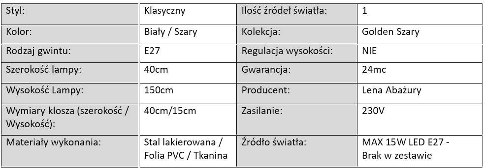 Lampa Podłogowa Stojąca Golden Jasno Szara / 1xE27