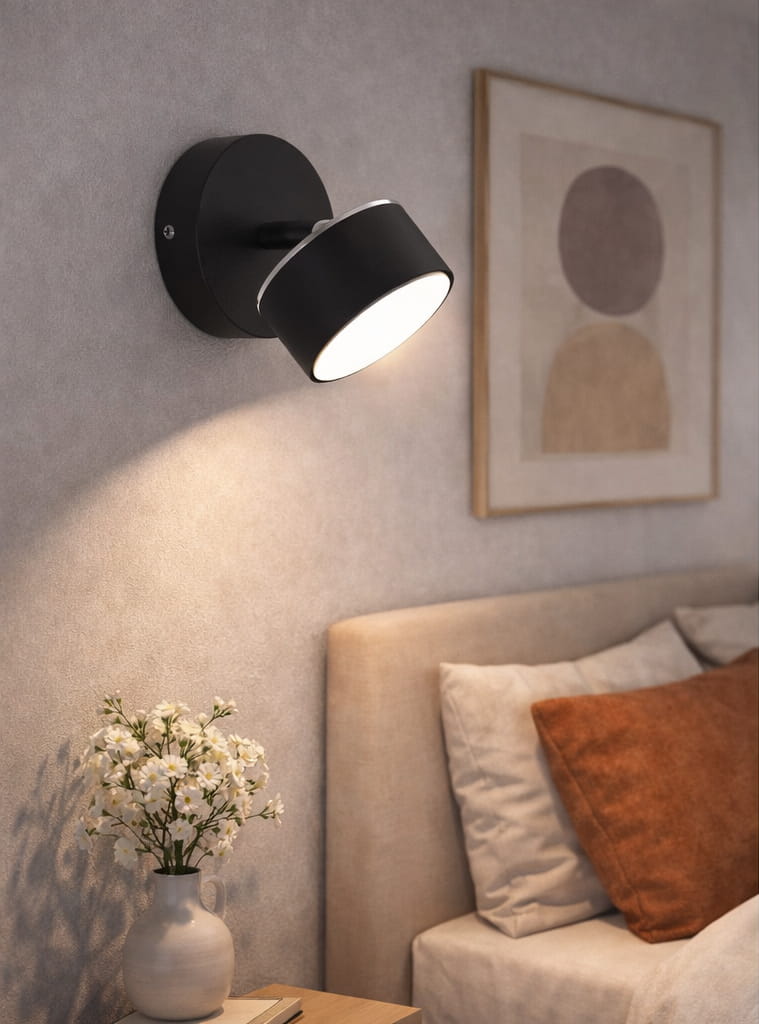 Wbudowany włącznik na podstawie kinkietu sprawia, że lampa doskonale sprawdzi się jako oświetlenie przy łóżku, do czytania lub jako dodatkowe światło punktowe w salonie i korytarzu.