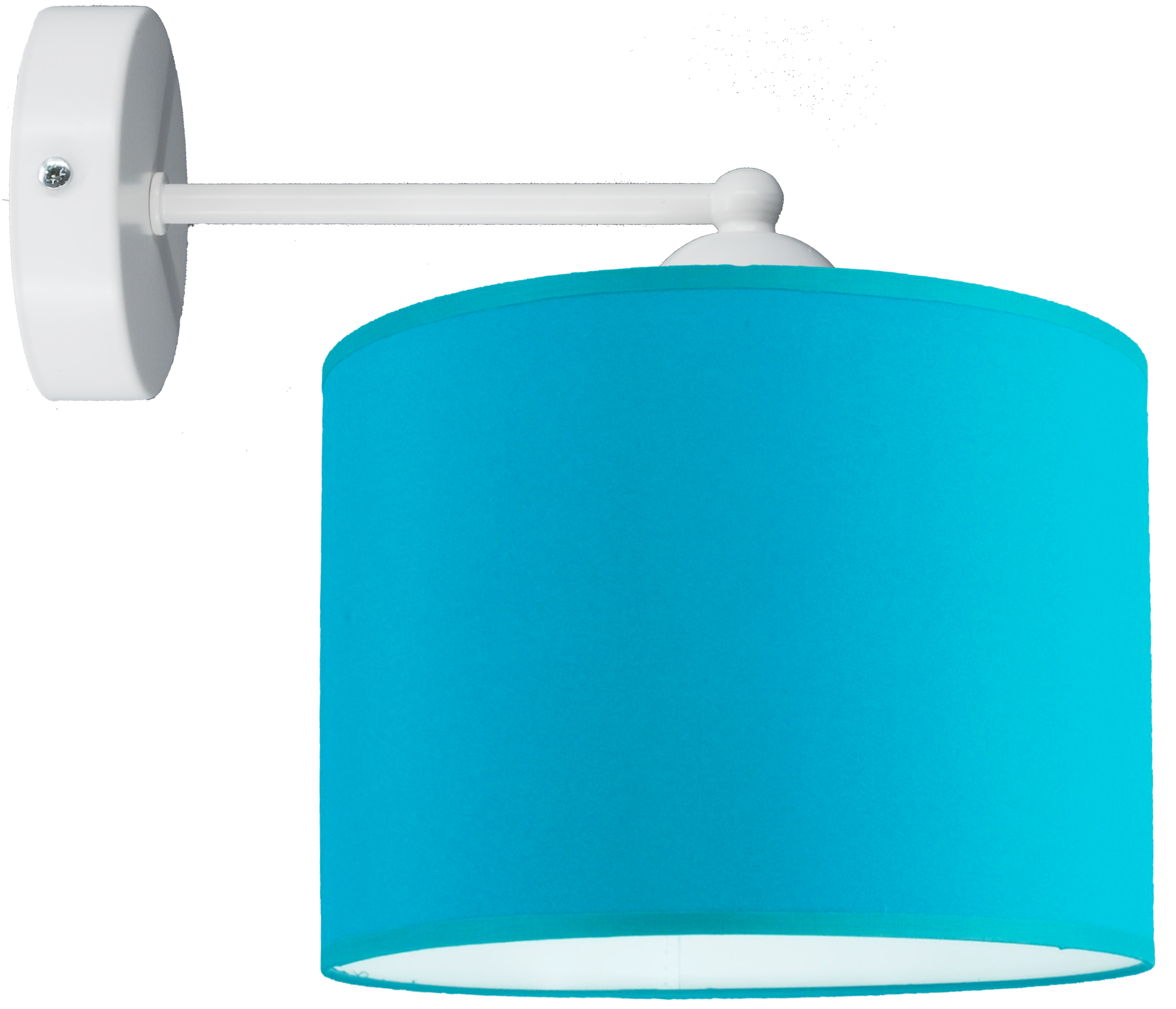Wyjątkowy kolor abażurów – turkus na białej folii PVC daje piękny, jasny efekt świetlny.