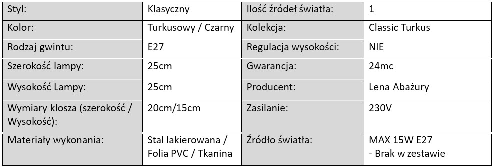Rodzaje lamp z kolekcji Classic Turkus