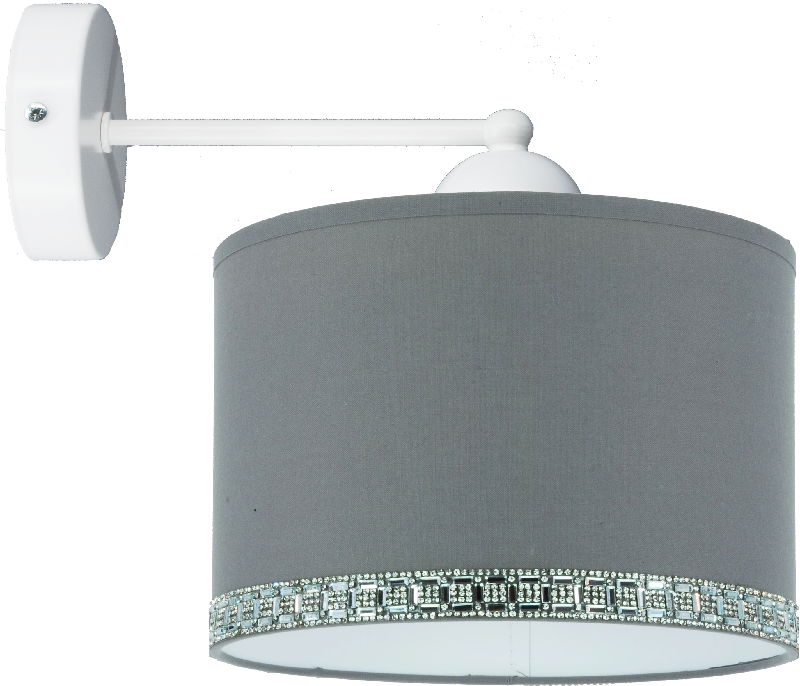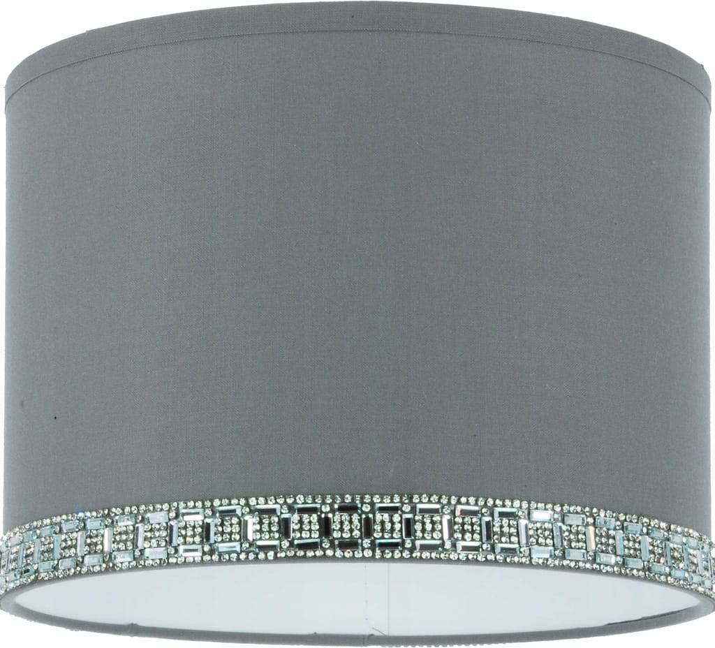 Każda lampa z tej serii została zaprojektowana z myślą o detalach. Abażury w odcieniu eleganckiej szarości mają klasyczny walcowaty kształt, który dobrze komponuje się z nowoczesnymi i klasycznymi wnętrzami. Dolna krawędź abażura została ozdobiona dekoracyjnym pasem z kryształków, które efektownie odbijają światło i dodają lampie luksusowego wyglądu.
