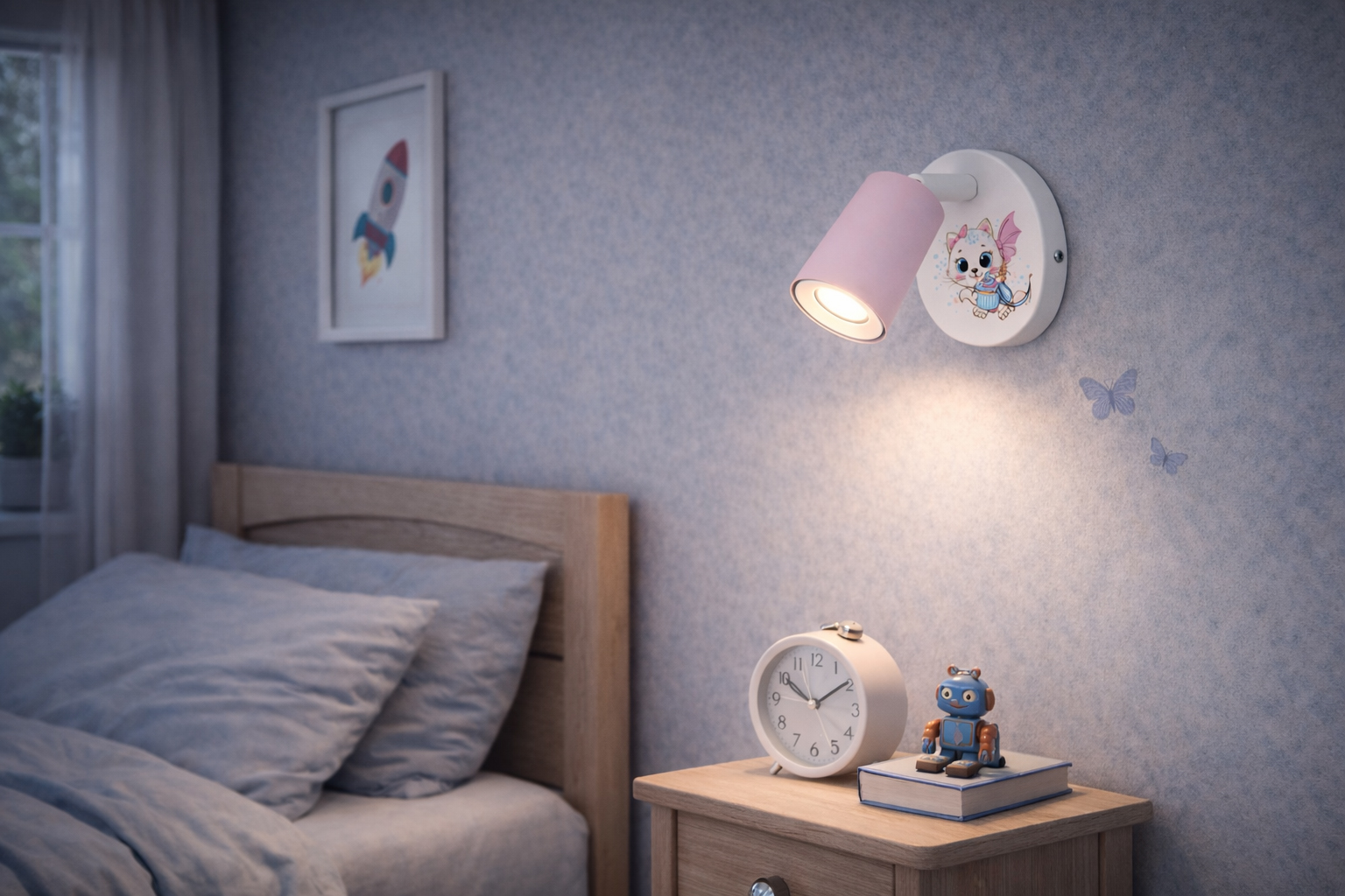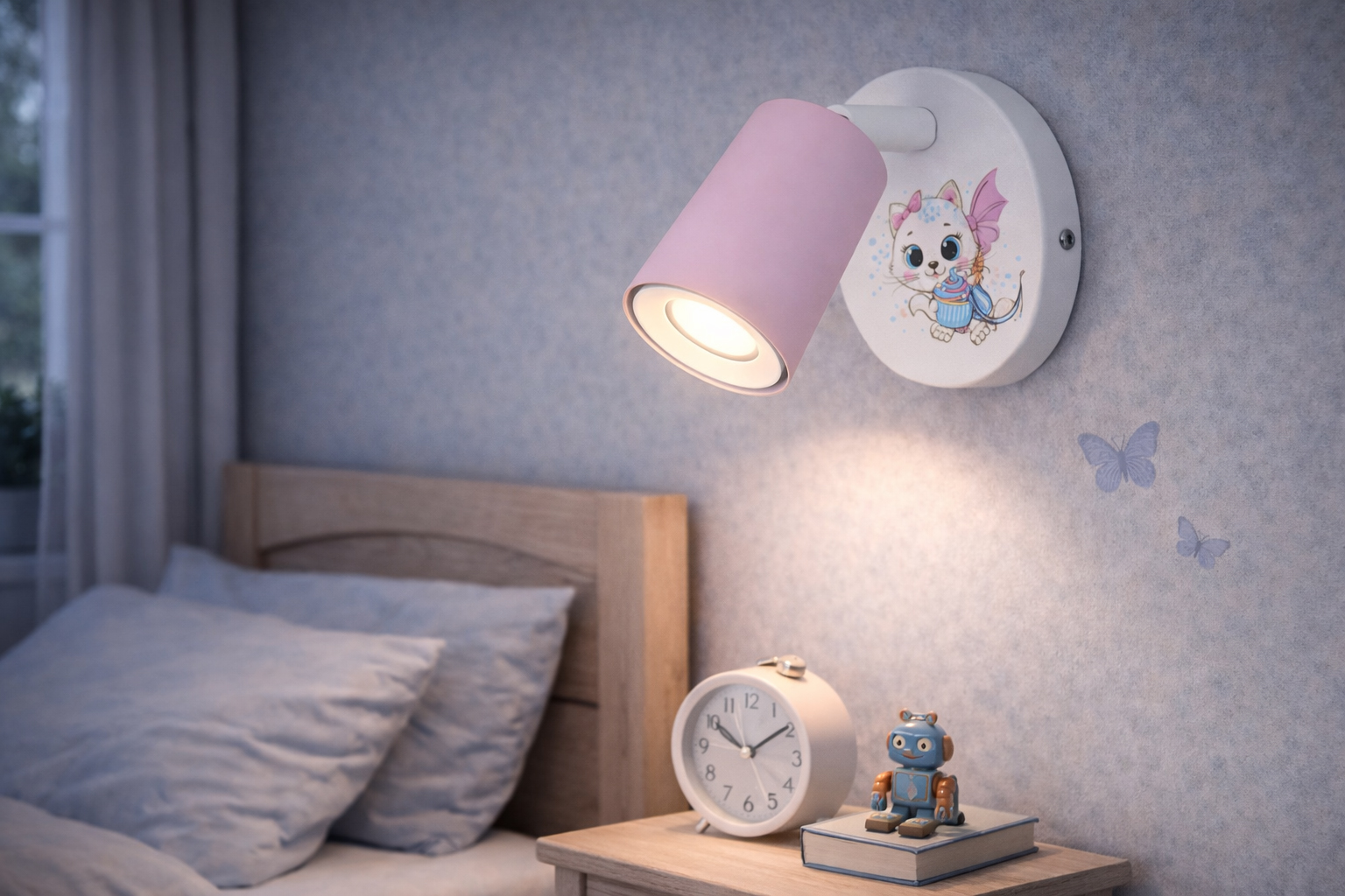 Kinkiet KOTEK RÓŻOWY GU10 z kolekcji LumiDreams to połączenie funkcjonalnego oświetlenia i wyjątkowego, dziecięcego designu, który wprowadzi do wnętrza ciepło, magię i przyjazny klimat.