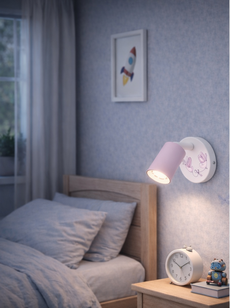 To doskonały wybór jako lampka nocna dla dziecka, kinkiet przy łóżku, oświetlenie do czytania lub dodatkowe światło w strefie zabawy.