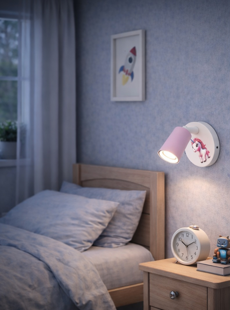 Model doskonale sprawdzi się jako lampka nocna dla dziewczynki, kinkiet przy łóżku, światło do czytania lub dodatkowe oświetlenie w pokoju dziecka.