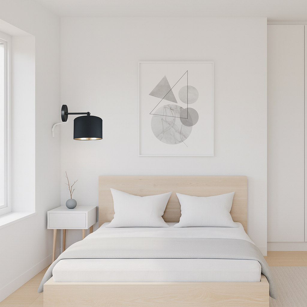 Ta lampa to połączenie elegancji i nowoczesności. Czarne wykończenie abażuru w połączeniu z połyskującą złotą folią wewnątrz tworzy efektowne kontrasty, które dodają wnętrzu charakteru. Zewnętrzna czerń wprowadza nutę klasyki i tajemniczości, podczas gdy złote wnętrze delikatnie odbija światło, tworząc ciepłą, przytulną atmosferę.