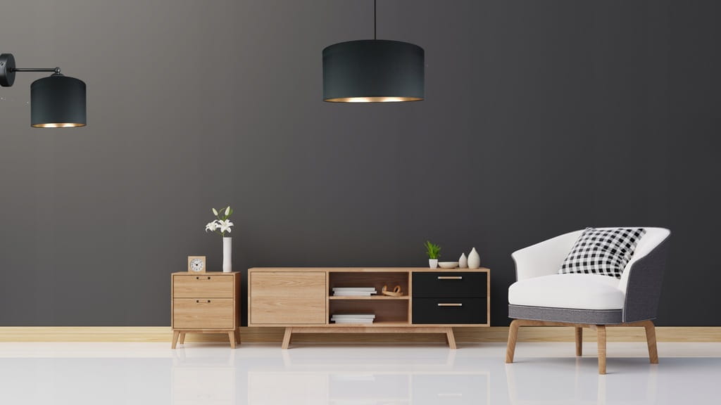 Abażury w eleganckiej szarości – pasują do wielu stylów i kolorystyki wnętrz.