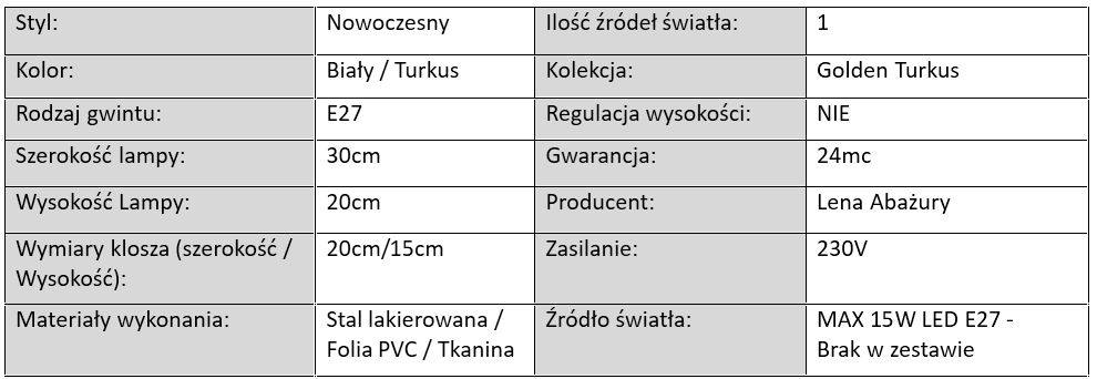 To doskonały wybór na stolik nocny lub biurko. W pokoju dziecka lub nastolatka lampki z turkusowym abażurem dodają kolorystycznego akcentu i sprawiają, że wnętrze nabiera indywidualnego charakteru.