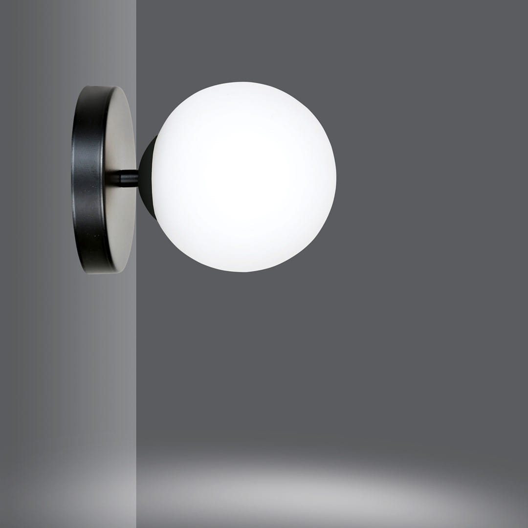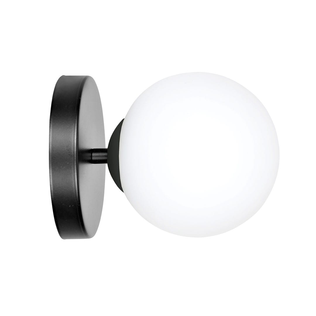 Lampa Ścienna KINKIET HALLDOR Czarna KLOSZ Opal / 1xE14