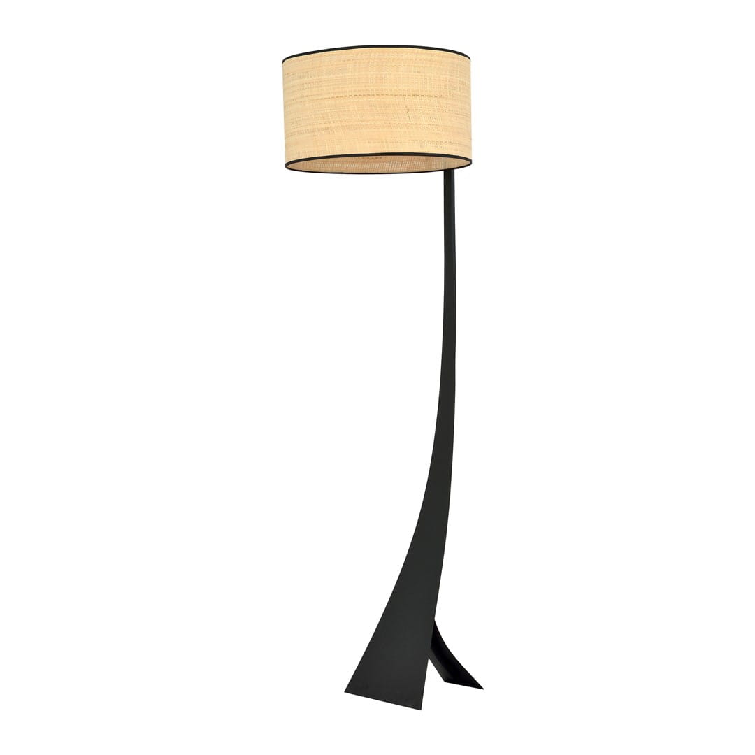 Lampa Stojąca Podłogowa ESTRELLA Czarna / Rattanowy Abażur