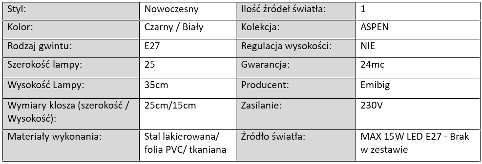 Lampy ASPEN wyposażone są w popularny gwint E27, co zapewnia szeroki wybór źródeł światła – od tradycyjnych żarówek po nowoczesne, energooszczędne LED-y.