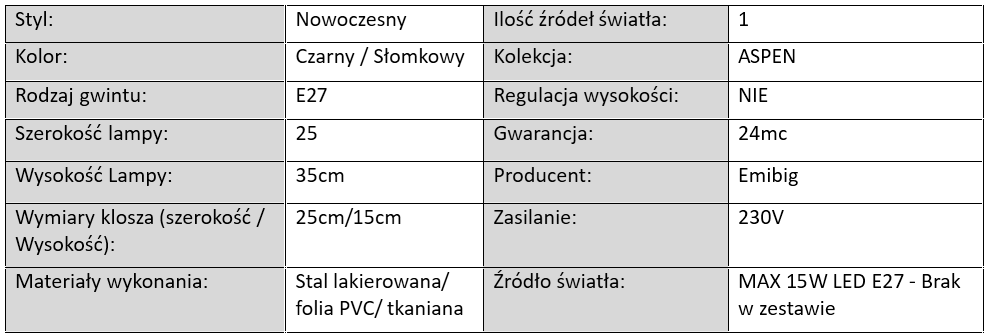 Lampy ASPEN wyposażone są w popularny gwint E27, co zapewnia szeroki wybór źródeł światła – od tradycyjnych żarówek po nowoczesne, energooszczędne LED-y.