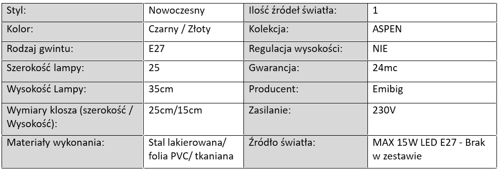 Lampa Stołowa Nocna ASPEN Czarno Złota / 1xE27