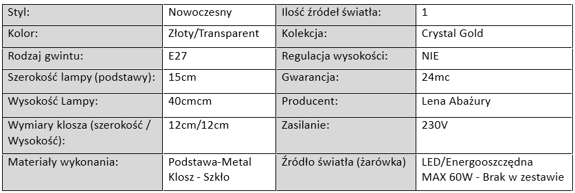 Lampa Stołowa Nocna Crystal Gold 1xE27