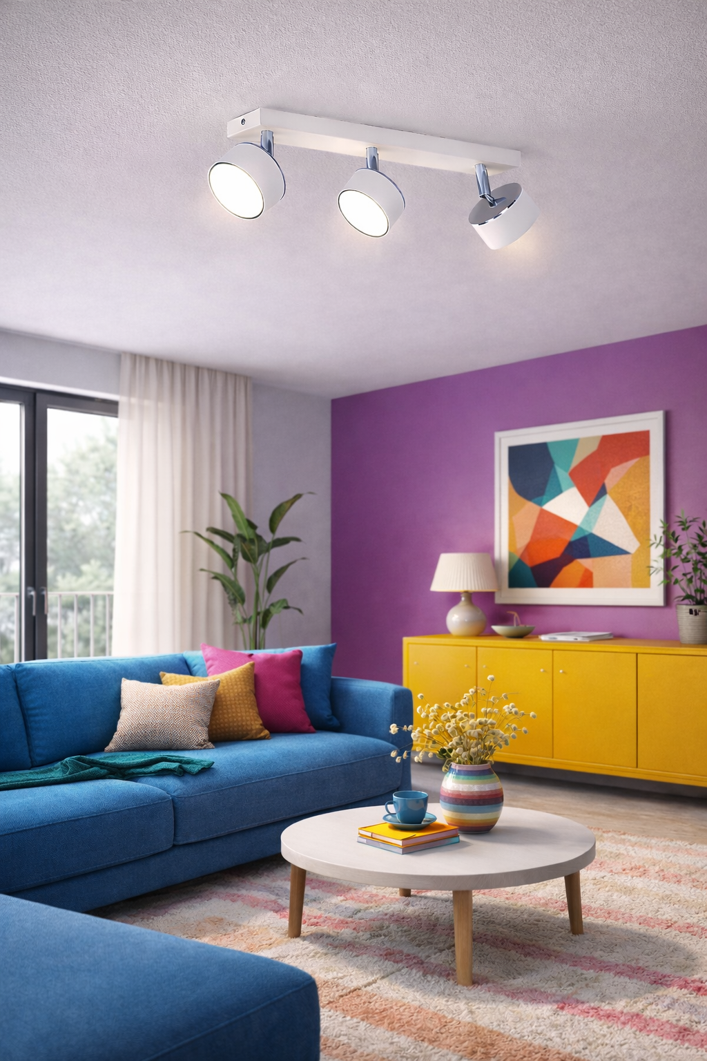 Model Axis 3 wyposażony został w trzy niezależnie regulowane reflektory, dzięki którym możesz skierować światło dokładnie tam, gdzie jest najbardziej potrzebne. Lampa sprawdzi się zarówno jako oświetlenie główne, jak i światło strefowe lub akcentowe.