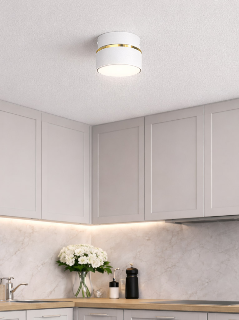 Plafon AXIS WHITE GOLD został zaprojektowany z myślą o nowoczesnych przestrzeniach. Minimalistyczna cylindryczna forma sprawia, że lampa prezentuje się niezwykle elegancko i harmonijnie komponuje się z różnymi stylami wnętrz.