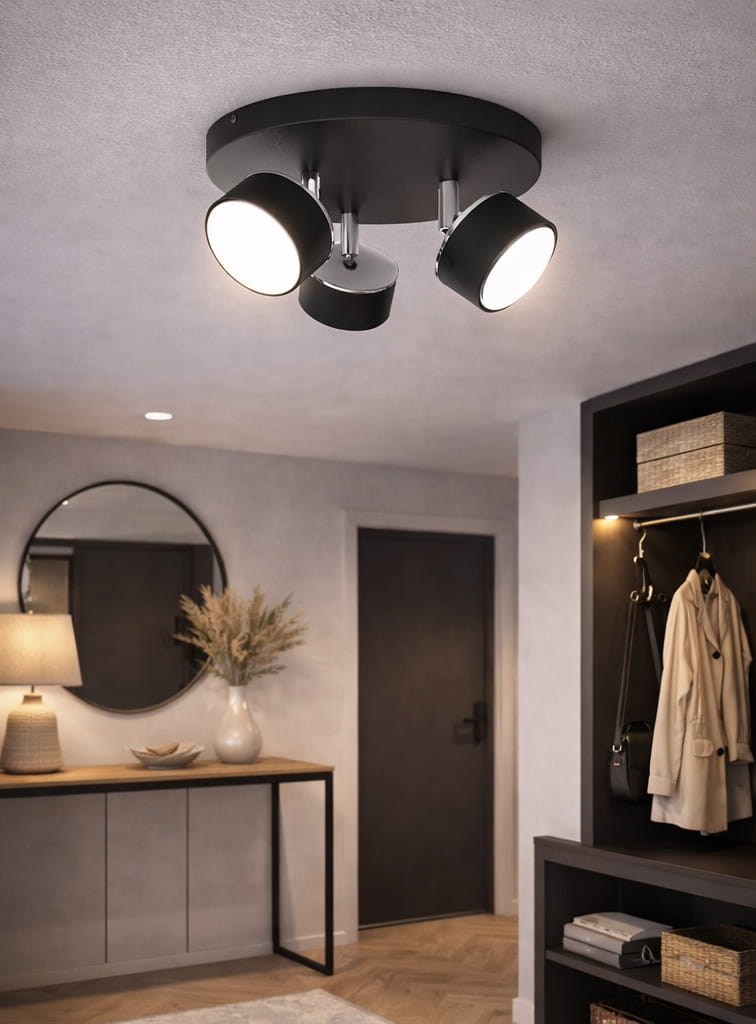 ✔️ 3 regulowane spoty – pełna kontrola nad światłem