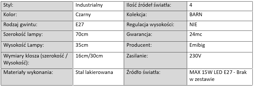 Każda lampa z kolekcji BARN wyposażona jest w popularną oprawkę E27, która pasuje do tradycyjnych, LED-owych oraz dekoracyjnych żarówek Edison. Dzięki temu możesz samodzielnie dobrać temperaturę i intensywność światła, idealnie dopasowując je do klimatu swojego wnętrza.