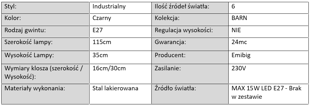 Lampa Sufitowa BARN Czarna / 6xE27