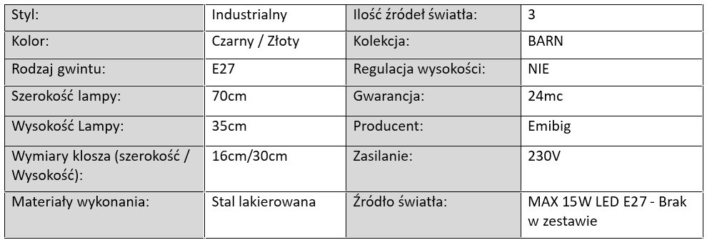 Lampa Sufitowa BARN Czarno-Złota / 3xE27