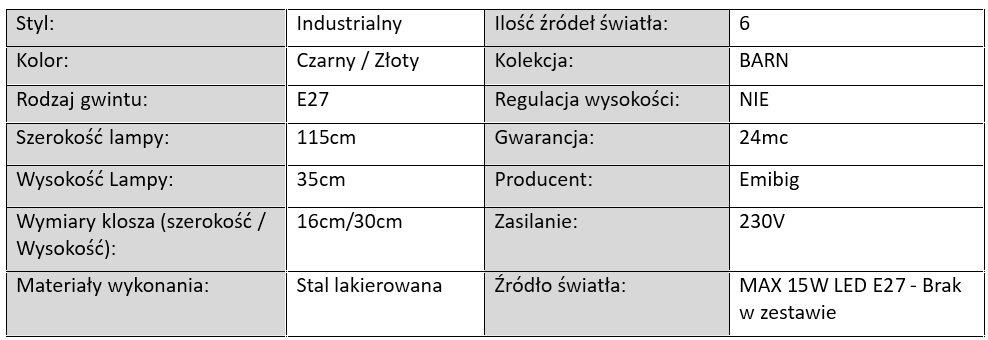 Lampa Sufitowa BARN Czarno-Złota / 6xE27