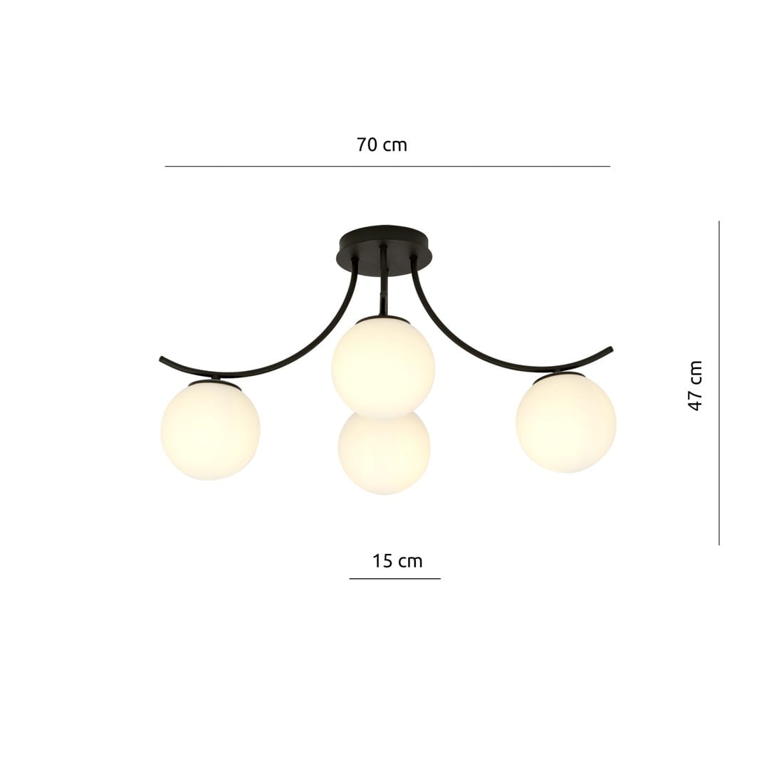 Lampa Sufitowa BOSTON Czarna Klosz Opal / 4 x E14