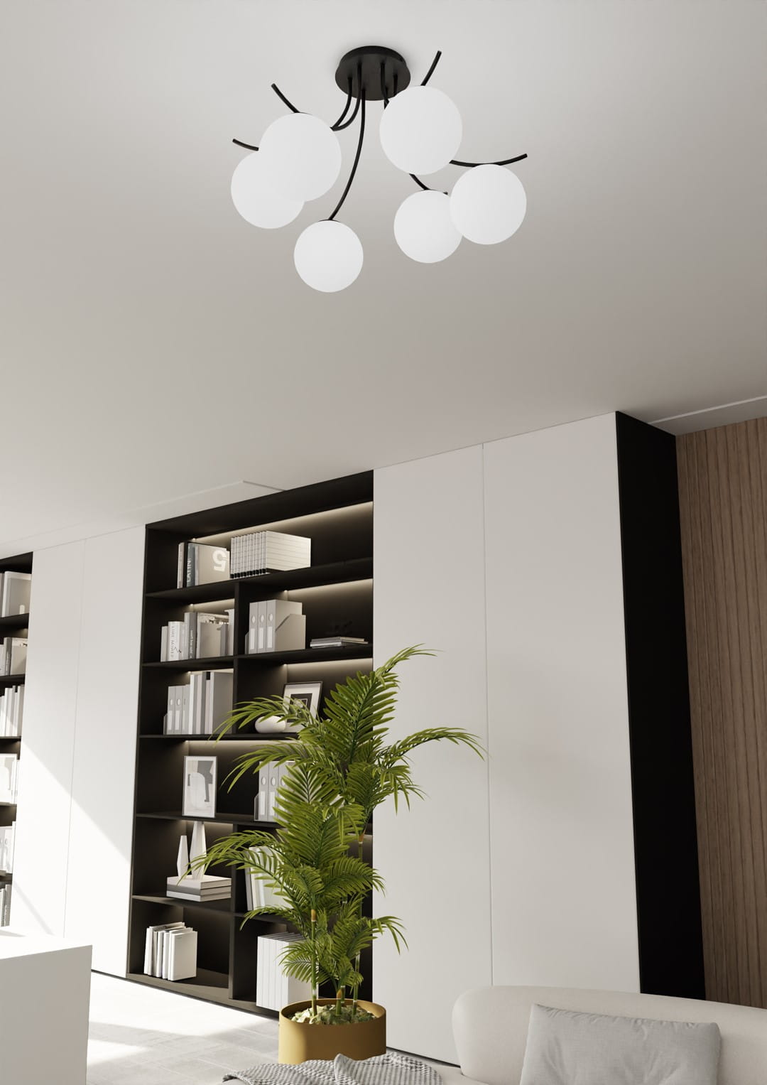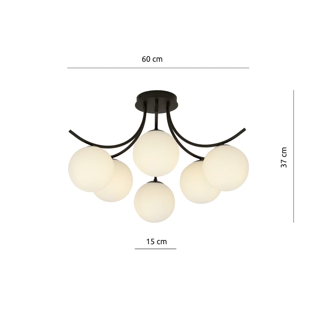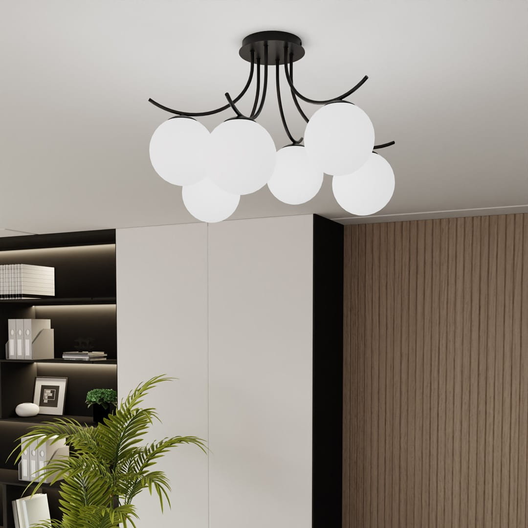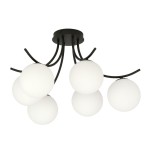 Lampa Sufitowa BOSTON Czarna Klosz Opal / 6 x E14