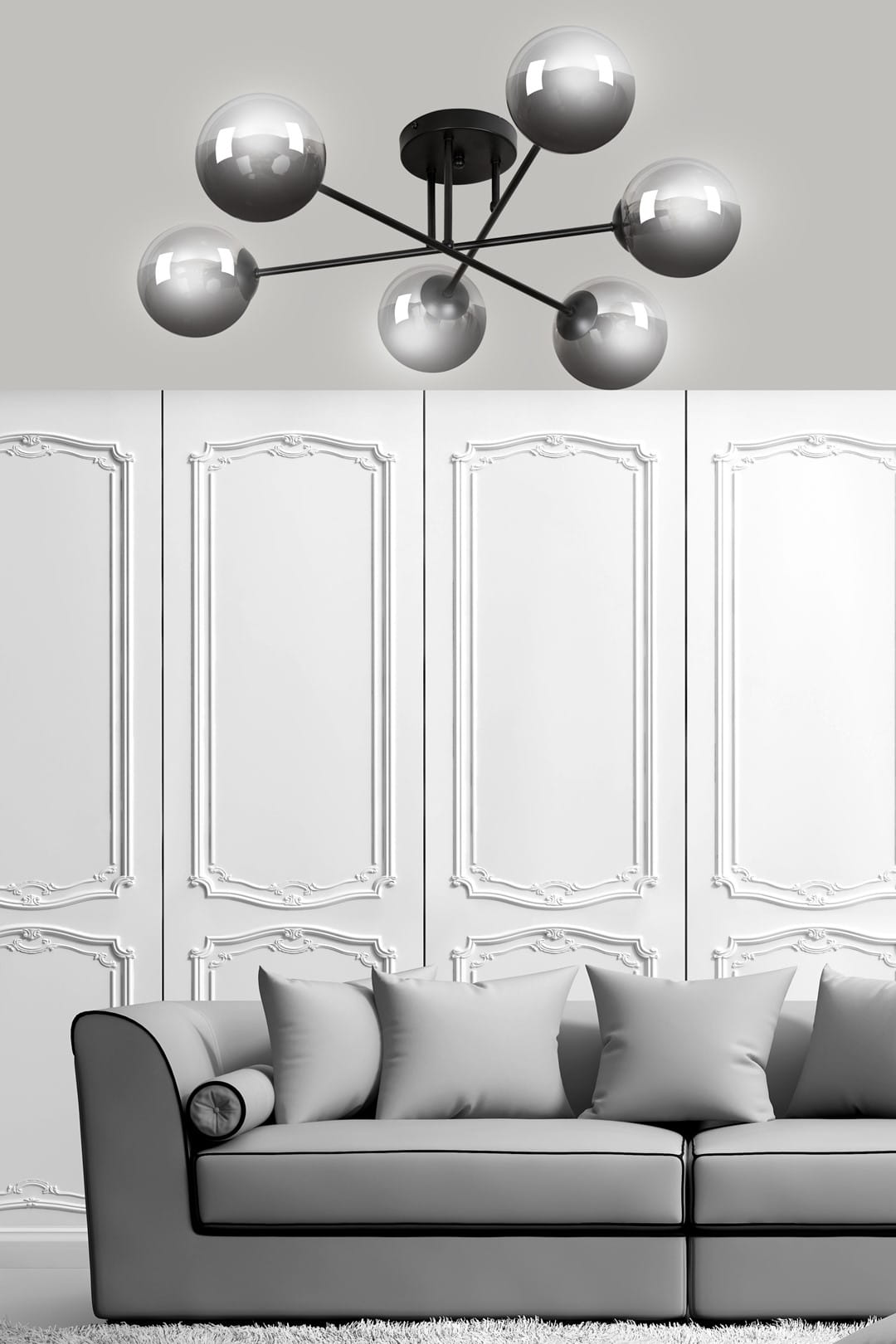 Lampa Sufitowa BRENDI Czarna Klosz Grafit / 6 x E14