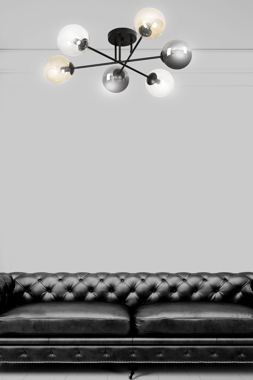 Lampy sufitowe BRENDI to nowoczesna kolekcja oświetlenia, która zachwyca elegancką formą, oryginalnymi kloszami i funkcjonalnością. Czarne oprawy w połączeniu ze szklanymi kulistymi kloszami w trzech wariantach kolorystycznych – grafitowym, miodowym i transparentnym – tworzą efektowne i stylowe oświetlenie, idealne do wnętrz nowoczesnych, industrialnych oraz glamour.