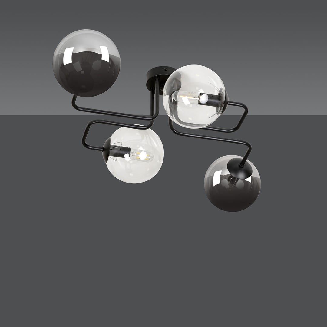 Lampy sufitowe BRENDI to nowoczesna kolekcja oświetlenia, która zachwyca elegancką formą, oryginalnymi kloszami i funkcjonalnością. Czarne oprawy w połączeniu ze szklanymi kulistymi kloszami w trzech wariantach kolorystycznych – grafitowym, miodowym i transparentnym – tworzą efektowne i stylowe oświetlenie, idealne do wnętrz nowoczesnych, industrialnych oraz glamour.