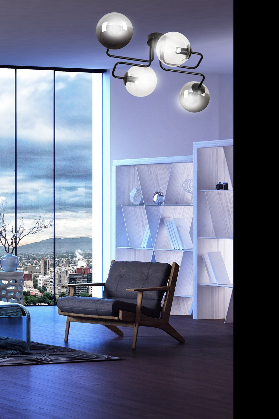 grafitowym – przydymione szkło tworzy nastrojowy klimat i delikatnie tłumi światło,