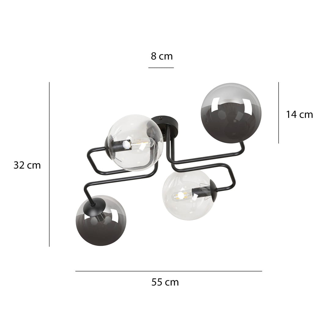 Lampa Sufitowa BRENDI Czarna Klosz MIX 3 / 4 x E14