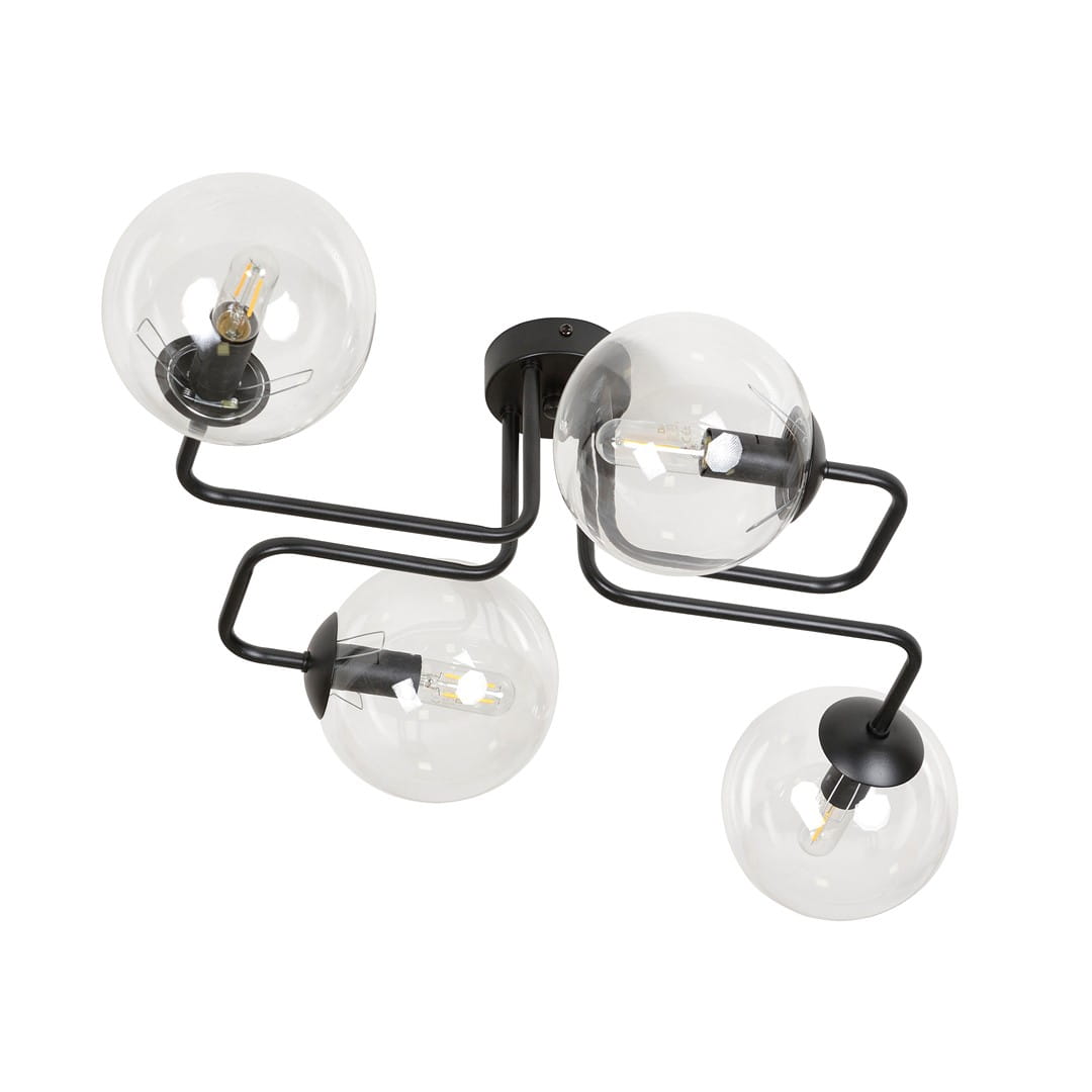 Lampa Sufitowa BRENDI Czarna Klosz Transparentny / 4 x E14