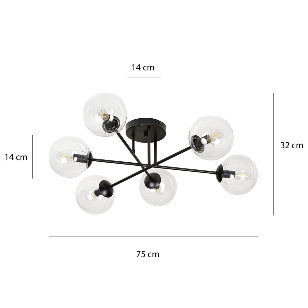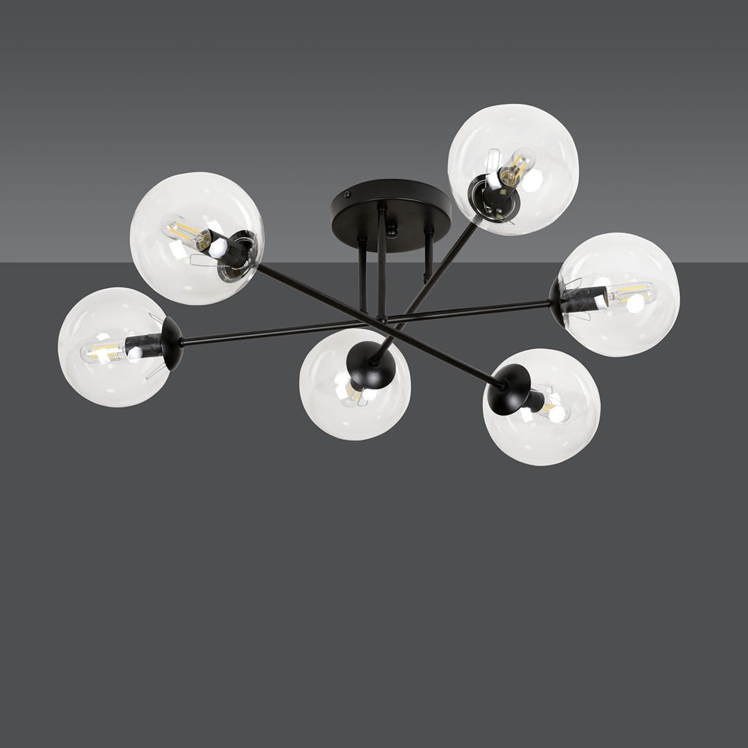 Lampa Sufitowa BRENDI Czarna Klosz Transparentny / 6 x E14