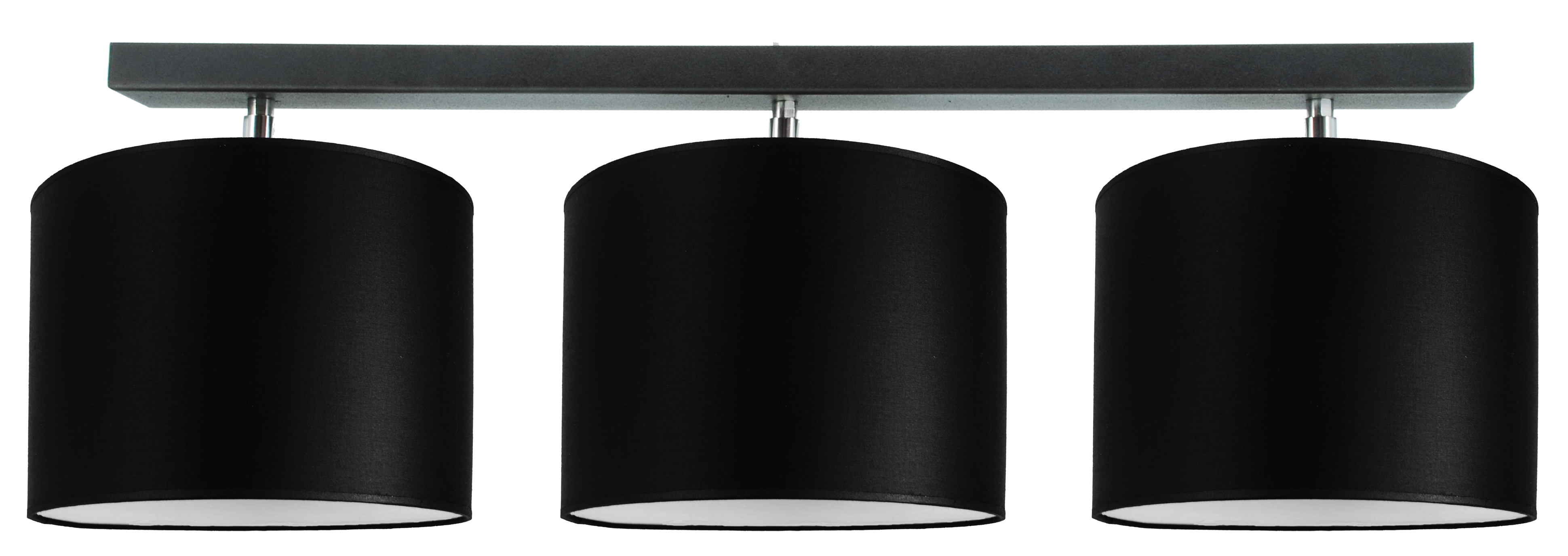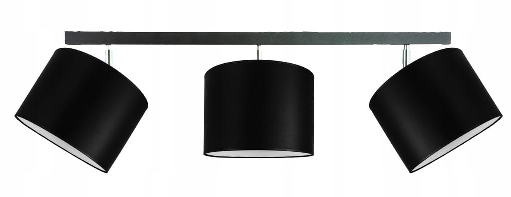 Abażury wykonano z czarnej tkaniny, która elegancko kontrastuje z białą folią wewnątrz, zapewniając efektowne rozproszenie światła i ciepłą atmosferę w pomieszczeniu. To doskonały wybór zarówno do wnętrz nowoczesnych, industrialnych, jak i tych w stylu loft czy glamour.
