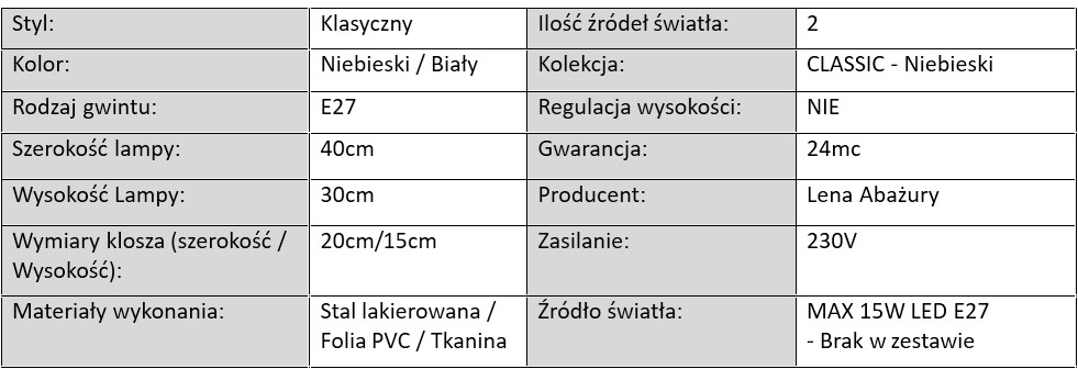 Kolekcja lamp CLASSIC – Niebieski „Chaber”