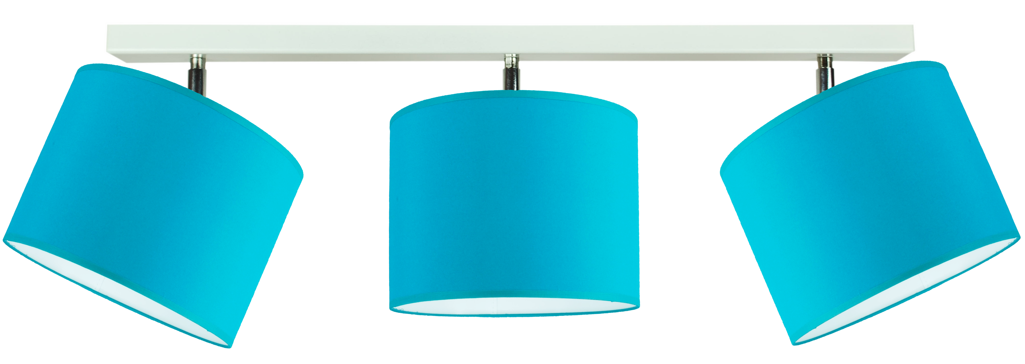 Wyjątkowy kolor abażurów – turkus na białej folii PVC daje piękny, jasny efekt świetlny.