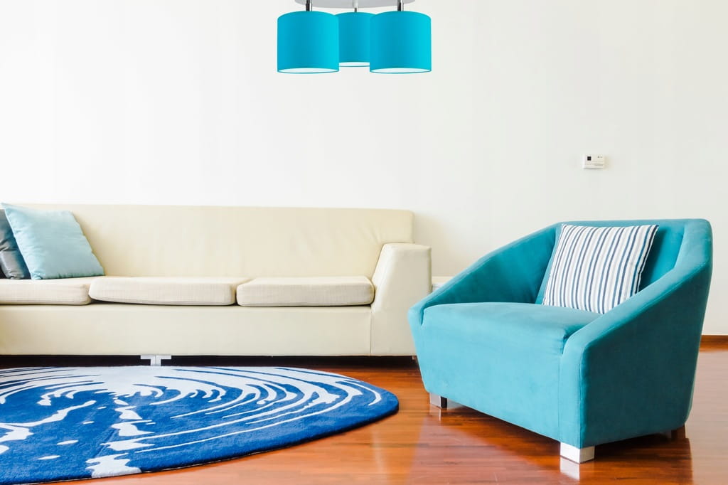 Wyjątkowy kolor abażurów – turkus na białej folii PVC daje piękny, jasny efekt świetlny.