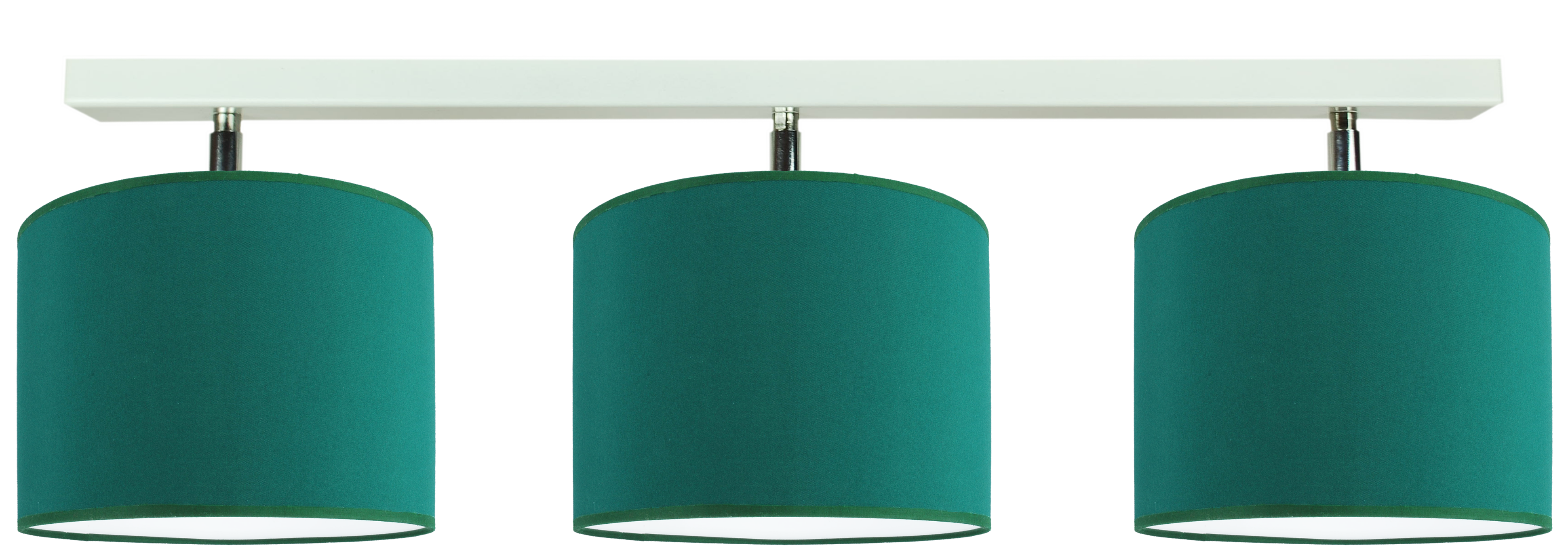 Modny kolor abażurów – butelkowa zieleń na białej folii PVC daje piękny efekt świetlny.