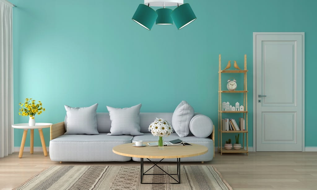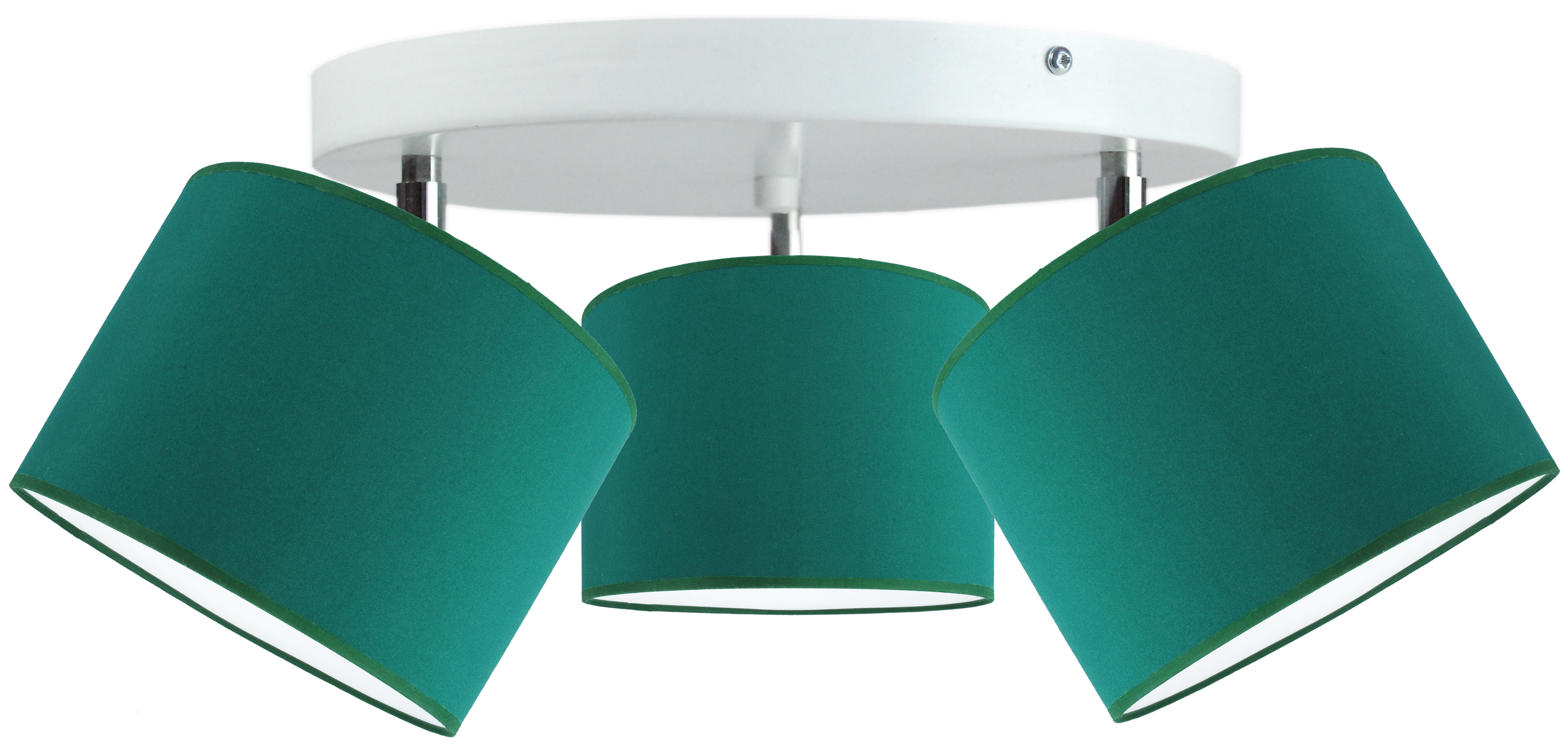 Modny kolor abażurów – butelkowa zieleń na białej folii PVC daje piękny efekt świetlny.