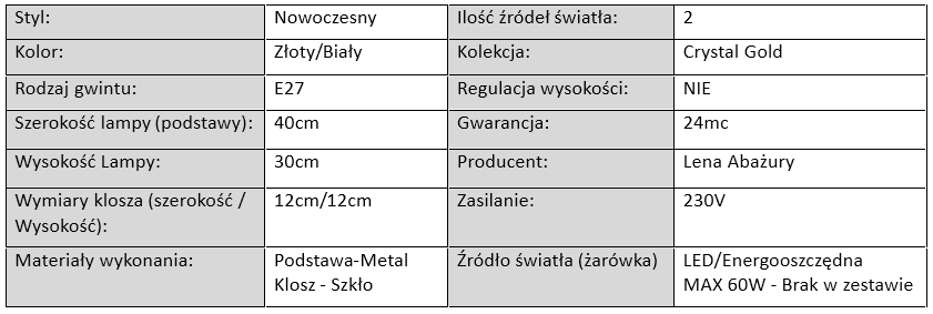Kolekcja Crystal Gold to wyjątkowe lampy, które łączą w sobie nowoczesny design, elegancję oraz funkcjonalność. To idealne rozwiązanie dla osób poszukujących stylowego oświetlenia do wnętrza, które podkreśli charakter pomieszczenia i nada mu luksusowego wyglądu. W skład kolekcji wchodzą lampy wiszące, lampy sufitowe, kinkiety, lampy stołowe oraz lampki nocne, które doskonale sprawdzą się zarówno w salonie, sypialni, jadalni, jak i w eleganckim biurze czy hotelowym apartamencie.