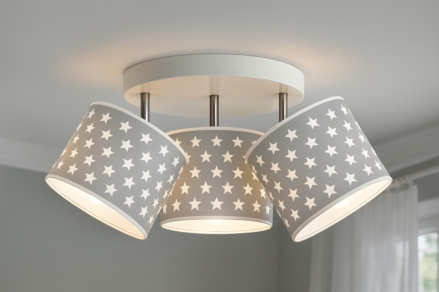 - ✅Przyjazny design: Abażur ozdobiony delikatnymi, białymi gwiazdkami wprowadza do pokoju dziecięcego atmosferę spokoju i bezpieczeństwa, doskonale komponując się z dziecięcymi aranżacjami.