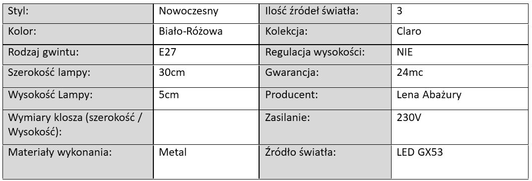 Lampa Sufitowa Dziecęca Plafon Claro Biało-Różowa / 3xGX53