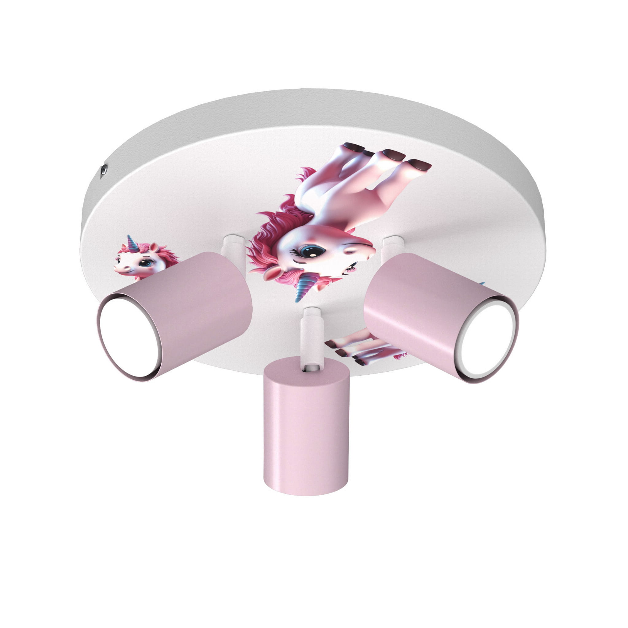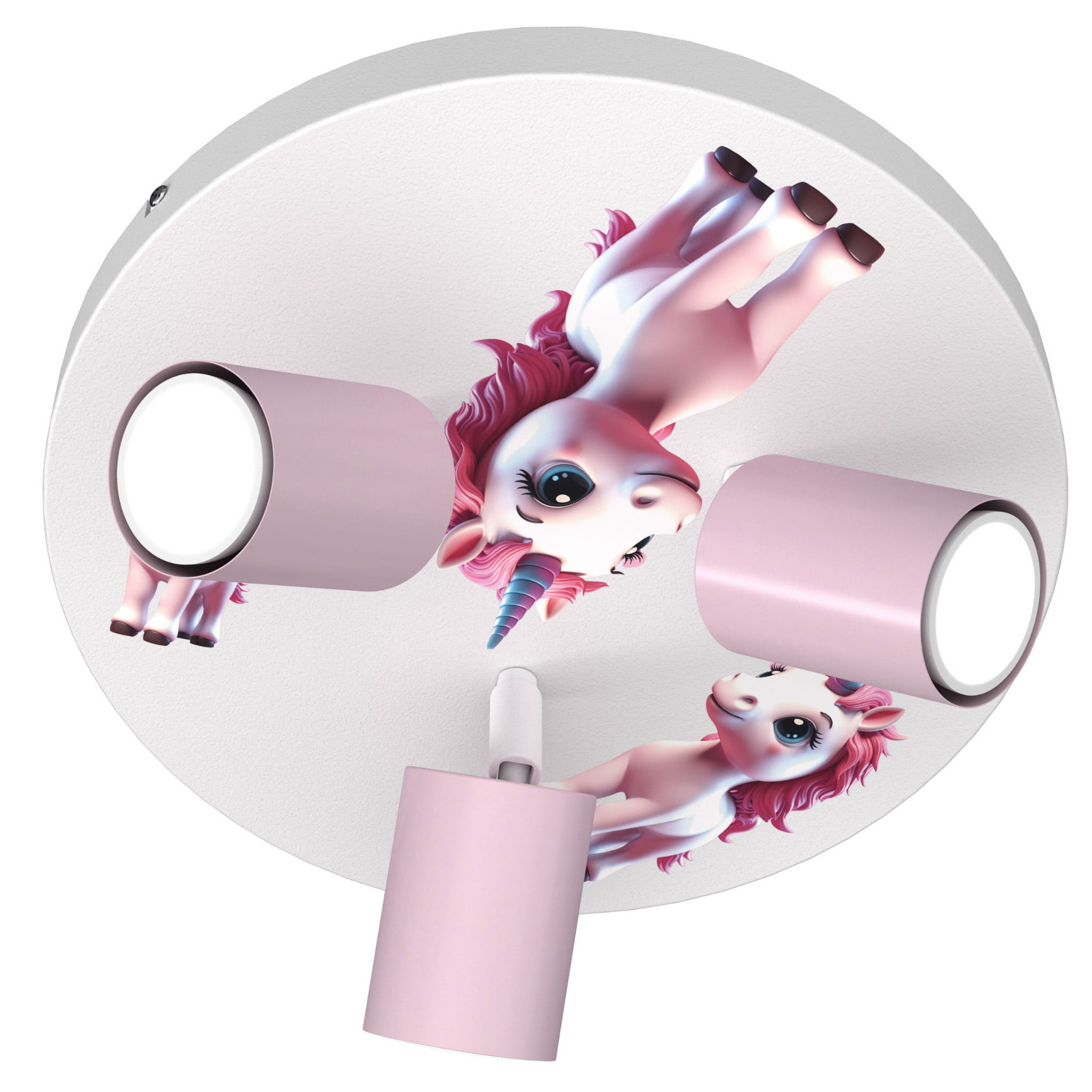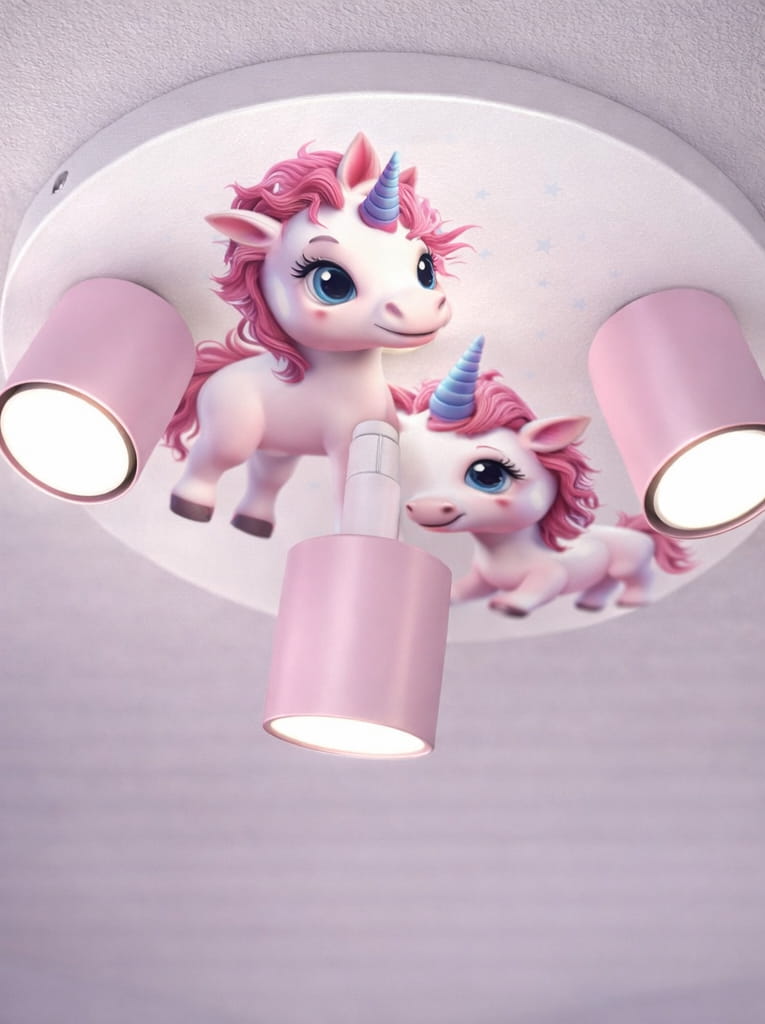 Lampa sufitowa LumiDreams – JEDNOROŻEC RÓŻOWY | Lampa dziecięca 3-punktowa do pokoju dziewczynki