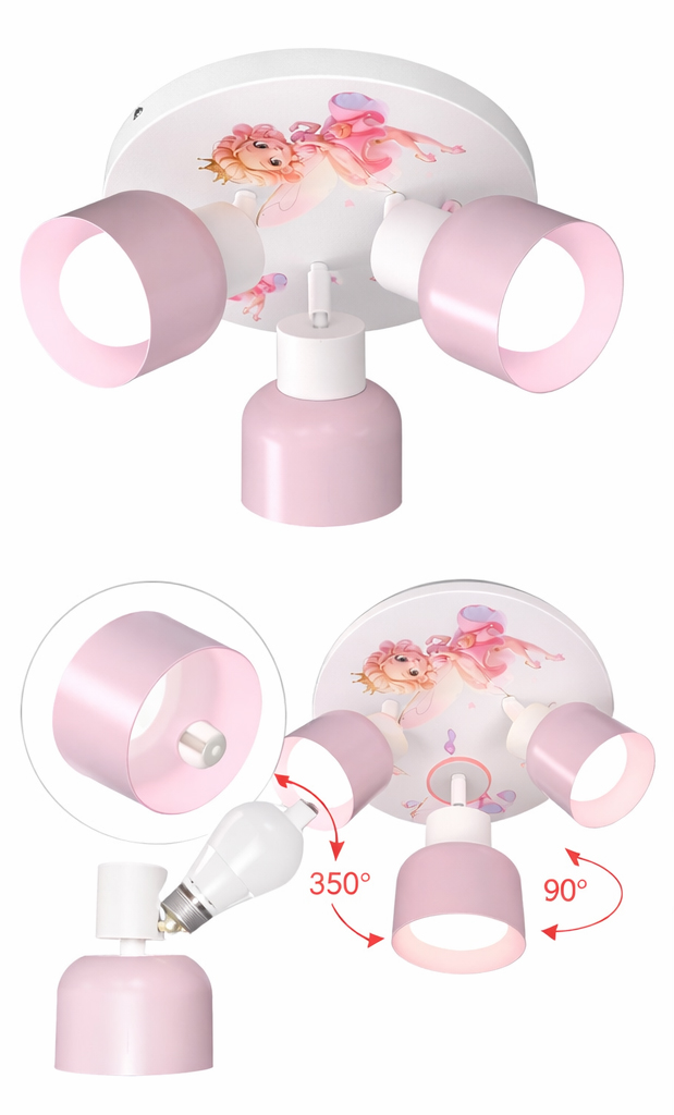 Jeśli szukasz lampy sufitowej do pokoju dziewczynki z gwintem E27, która połączy funkcjonalność z bajkowym designem, model Wróżka Różowa będzie doskonałym wyborem. To praktyczne, 3-punktowe oświetlenie dziecięce, które wniesie do wnętrza ciepło, subtelność i magiczny klimat.